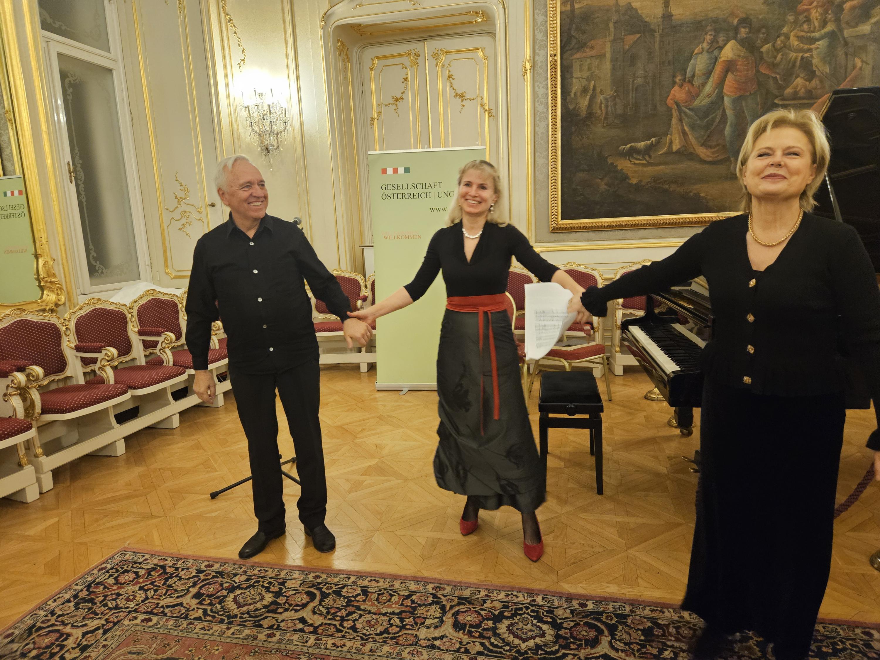 Die musikalischen Höhepunkte des Abends gestalteten die österreichische Kammersängerin und Integrationsbotschafterin Ildikó Raimondi, die mit Liedern von Franz Schubert und Franz Lehar, sowie das renommierten Klavierduo Tünde Kurucz und Imre Rohmann, die mit dem selten gespielten "Divertissement á la hongroise" von Franz Schubert das Publikum begeisterten.