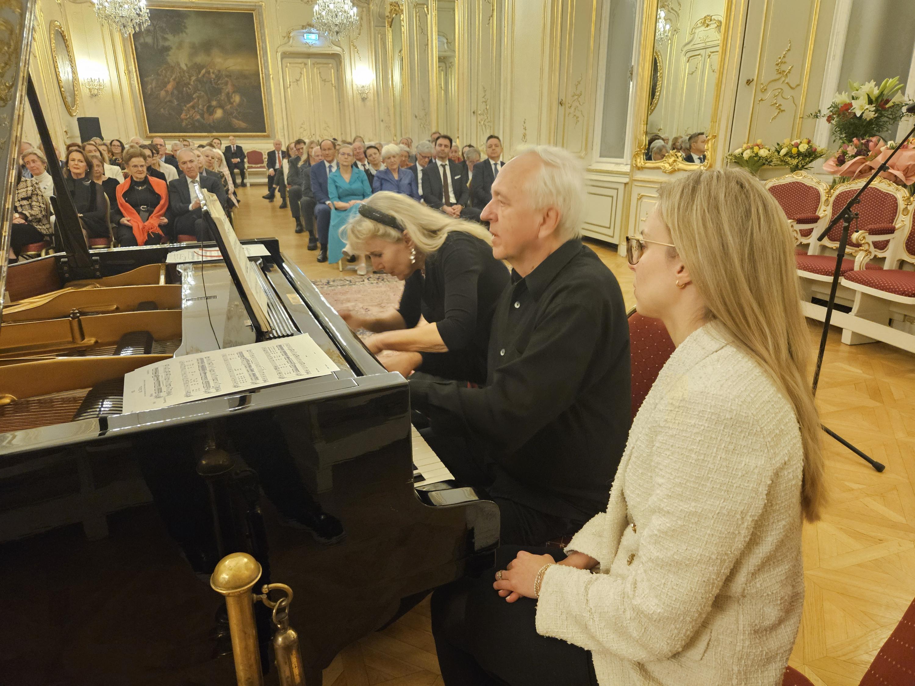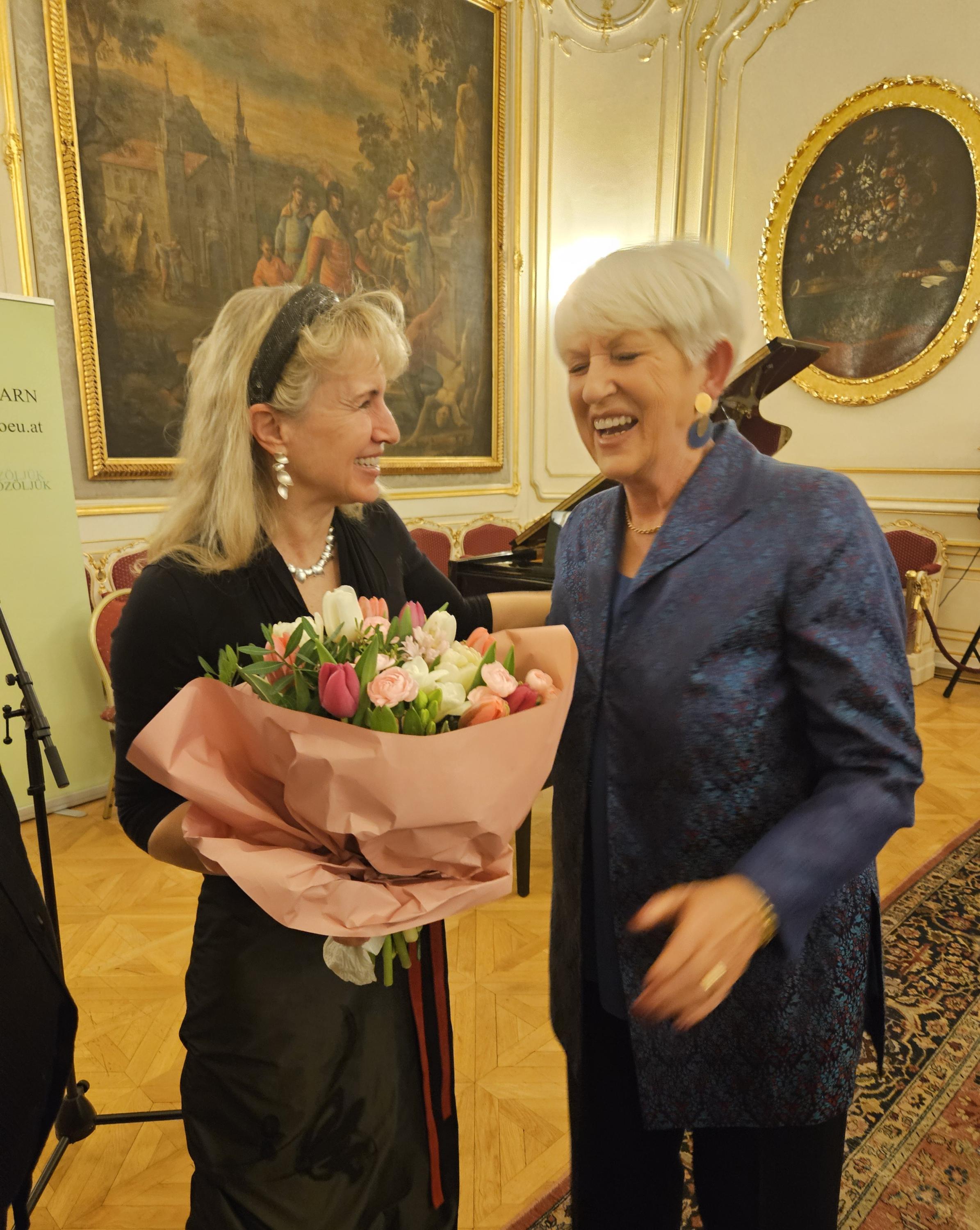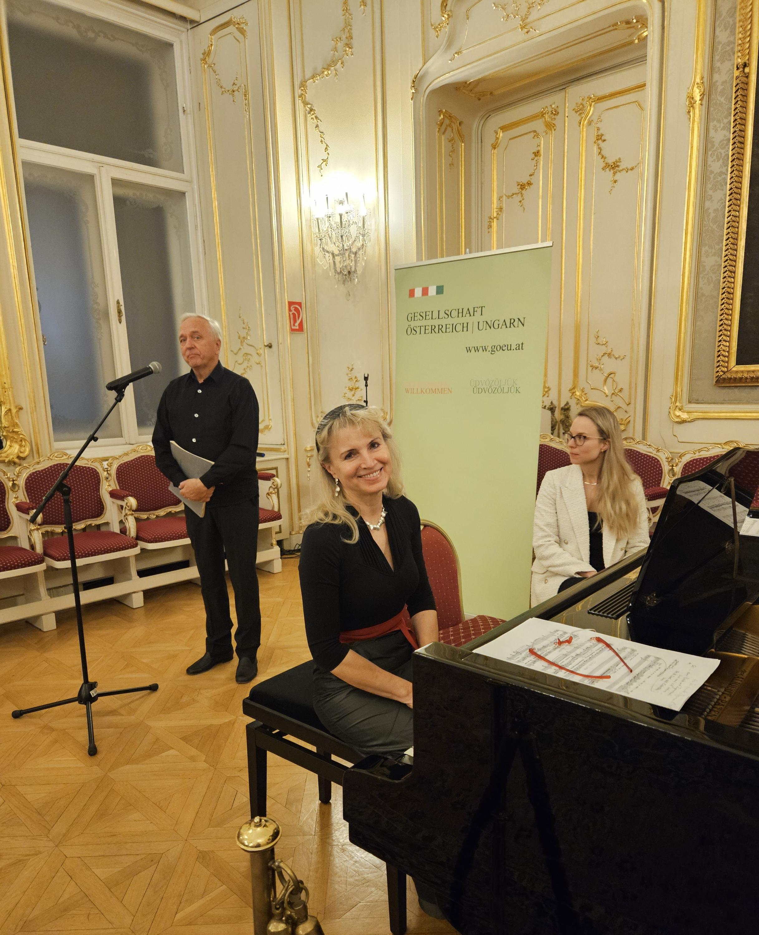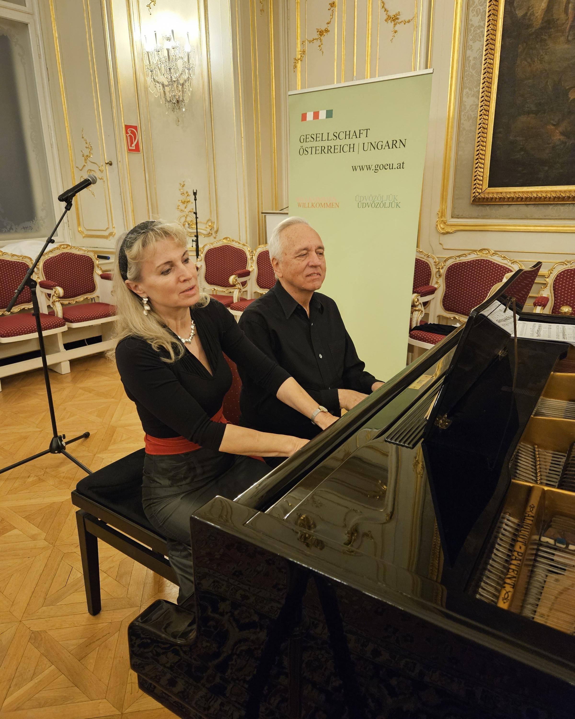 Die musikalischen Höhepunkte des Abends gestalteten die österreichische Kammersängerin und Integrationsbotschafterin Ildikó Raimondi, die mit Liedern von Franz Schubert und Franz Lehar, sowie das renommierten Klavierduo Tünde Kurucz und Imre Rohmann, die mit dem selten gespielten "Divertissement á la hongroise" von Franz Schubert das Publikum begeisterten.